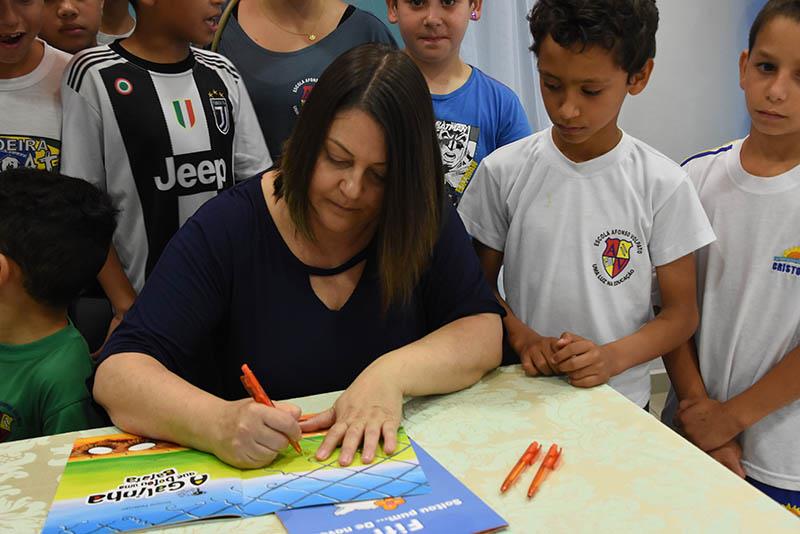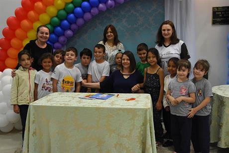 Alegria que pode ser vista no rosto de cada um dos estudantes. Enquanto contava suas histórias, Simone Pedersen arrancou sorrisos dos pequenos leitores. Autora de 43 livros entre romance, contos, crônicas, poemas e literatura infantil e juvenil, Simone acredita que a literatura é capaz de transformar um ser humano. Na opinião de escritora, por meio da literatura, as pessoas têm condições de viver experiências que jamais teriam. “Todos esses movimentos são muito importantes para a formação do ser humano, mais ainda para uma criança. Você promove uma reflexão, promove um diálogo com o mundo. Acho que a pessoa que eu sou hoje é resultado de tudo que eu vivi, mas também de tudo que outras pessoas viveram e que eu tomei conhecimento por amizade pessoal ou por leitura. Leitura é essa ponte, ela lhe traz experiências de pessoas do mundo inteiro. É fantástico”, ressaltou.
