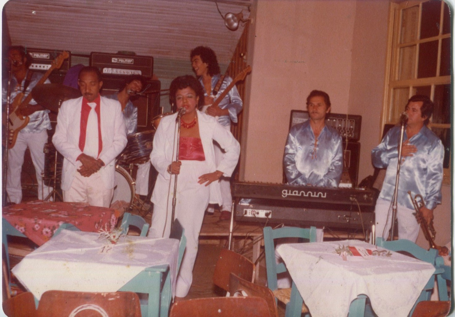 Identificados: Edi Isaías, Djanira Ribeiro. Na banda: Alegre Corrêa, Guinha Ramires, Adelino, Xoxo Colavin.