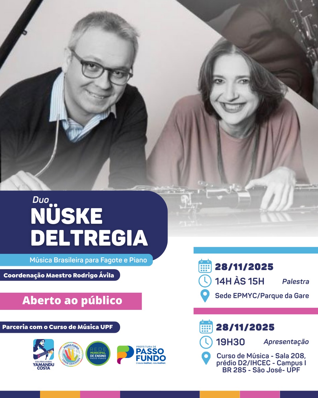 Curso de Música da UPF e Escola Pública de Música Yamandu Costa promovem encontro com Duo Nüske Deltregia