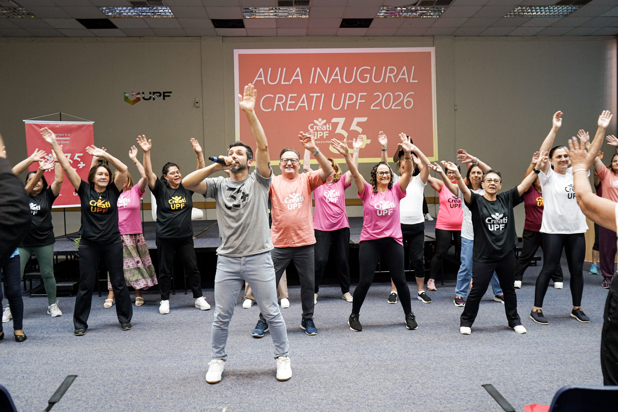 A busca por qualidade de vida ao longo dos anos passa por diferentes dimensões do cuidado com o corpo e a mente. A partir desse olhar, o Centro de Referência e Atenção ao Idoso da Universidade de Passo Fundo (Creati/UPF) promoveu, nesta sexta-feira, 10 de abril, a aula inaugural de 2026. A atividade reuniu alunos de Passo Fundo, Carazinho e Lagoa Vermelha em um momento de integração e reflexão.