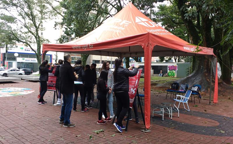 Na ocasião, fumantes que passavam pelo local foram sensibilizados a abandonar o cigarro. De acordo com o professor da disciplina Reabilitação Cardiovascular, Leonardo Calegari, os estudantes se envolveram e interagiram diretamente com a população, visando promover o autocuidado com a saúde. Ainda, em parceria com o Sesc, os alunos contribuíram com as atividades “Saúde em movimento”, “Invasão ao comércio” e “Caminhada orientada”.