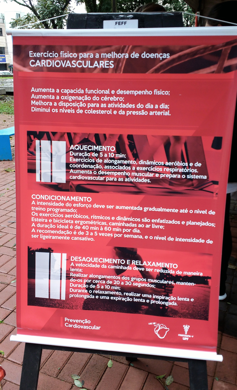 O curso de Fisioterapia da Universidade de Passo Fundo (UPF) promoveu uma atividade de conscientização sobre redução dos fatores de risco para doenças cardiovasculares em 31 de maio, Dia do Desafio. A ação foi feita na Praça Tochetto, onde a comunidade foi convidada a mensurar a pressão arterial e foi motivada, pelos acadêmicos, a mudar e a manter hábitos de vida saudáveis.