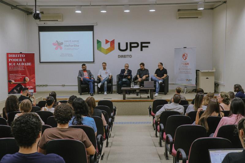 O curso de Direito da Universidade de Passo Fundo (UPF), em parceria com o Programa de Pós-Graduação em Direito e o projeto de extensão Projur Mulher e Diversidade, promoveu, nesta segunda-feira (16), o painel “Não são todos os homens”, realizado no anfiteatro do prédio do Direito UPF. A atividade integrou a programação do Mês da Mulher e reuniu especialistas de diferentes áreas para discutir o papel das masculinidades na prevenção e no enfrentamento à violência contra a mulher.