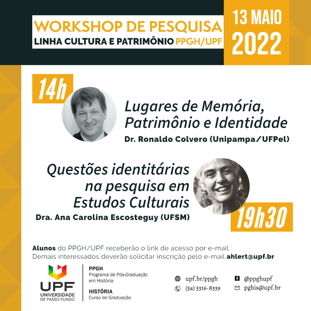 O Workshop das Linhas de Pesquisa faz parte das atividades programadas do PPGH e ocorre semestralmente. Mais informações sobre o Programa em www.upf.br/ppgh.