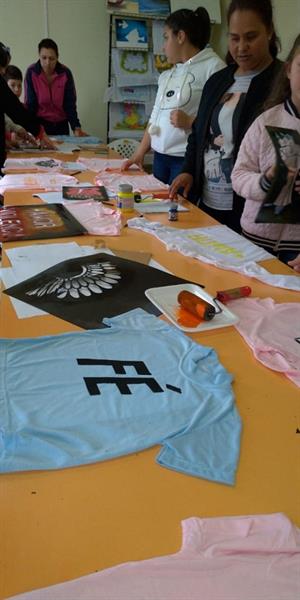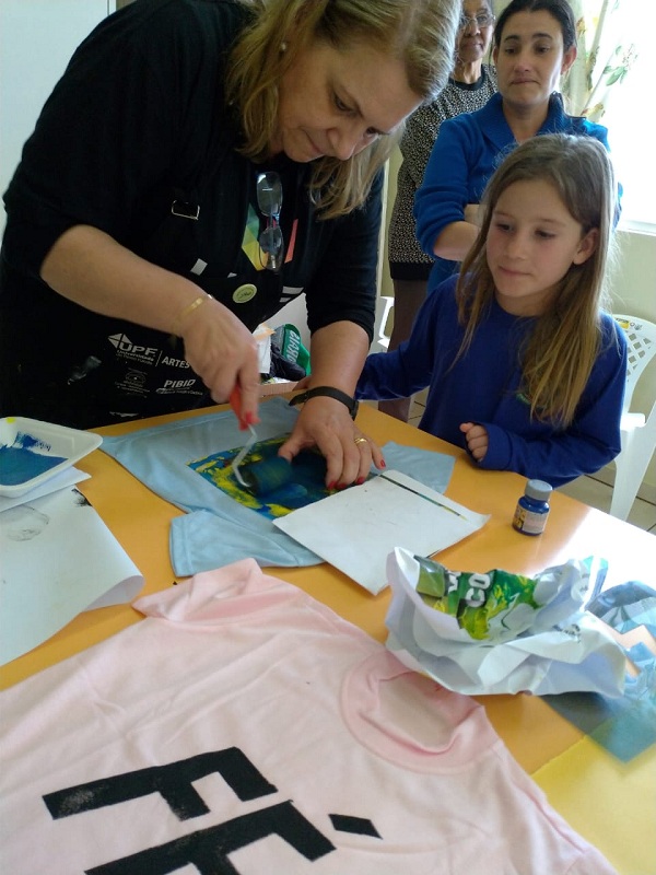 Durante o dia, a coordenadora do curso de Artes Visuais, professora Me. Mariane Loch Sbeghen, ministrou a oficina “Serigrafia – a arte de fazer parte”. Já a coordenadora do curso Design de Moda, professora Me. Dulcicleia Antunes, junto com a acadêmica Saionara Amaro Cavalheiro, ministrou as oficinas de costura e pintura em tecido “Cejume: cada retalho costurando sua história”. As oficinas reuniram a comunidade e os participantes do Cejume.