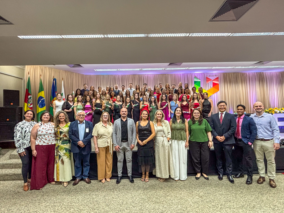 A Universidade de Passo Fundo (UPF) realizou, na noite dessa quinta-feira, 26 de fevereiro, a cerimônia de conclusão dos Programas de Residência Multiprofissional e Profissional em Saúde. O evento marcou a certificação de 53 novos especialistas nas áreas de Atenção ao Câncer, Cardiologia, Saúde do Idoso, Cirurgia e Traumatologia Bucomaxilofacial e Medicina Veterinária.
