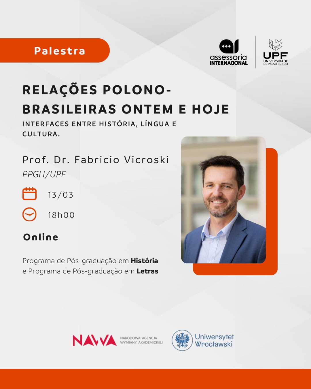 A Assessoria Internacional da Universidade de Passo Fundo (AI/UPF) inicia, na próxima sexta-feira (13) uma série de palestras interculturais entre Brasil e Polônia. A ação faz parte do projeto “Relações polono brasileiras ontem e hoje: interfaces entre história, língua e cultura”, e as atividades serão híbridas e com certificação, ideal para estudantes que queiram ampliar redes e internacionalizar o currículo, especialmente para bolsistas CAPES.