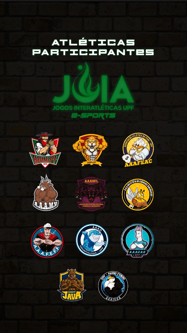 Os Jogos reúnem onze atléticas das unidades acadêmicas da UPF, representadas pelas Faculdades de Medicina (FM); de Engenharia e Arquitetura (Fear); de Ciências Econômicas, Administrativas e Contábeis (Feac); de Direito (FD); de Odontologia (FO); de Artes e Comunicação (FAC); de Educação Física e Fisioterapia (Feff); de Agronomia e Medicina Veterinária (FAMV); Institutos de Ciências Biológicas (ICB); de Ciências Exatas e Geociências (ICEG) e de Filosofia e Ciências Humanas (IFCH). Os participantes disputam quatro modalidades, que foram divididas em duas etapas. A primeira aconteceu nos dias 2 e 3 de maio, com partidas de pôquer e Fifa 2020. Neste final de semana, 16 e 17 de maio, serão disputados CS: GO e LoL. O público poderá acompanhar ao vivo no canal de transmissão www.twitch.tv/joiaupf no sábado (16), a partir das 13h, e no domingo (17), às 11h. Alguns jogos terão narração.