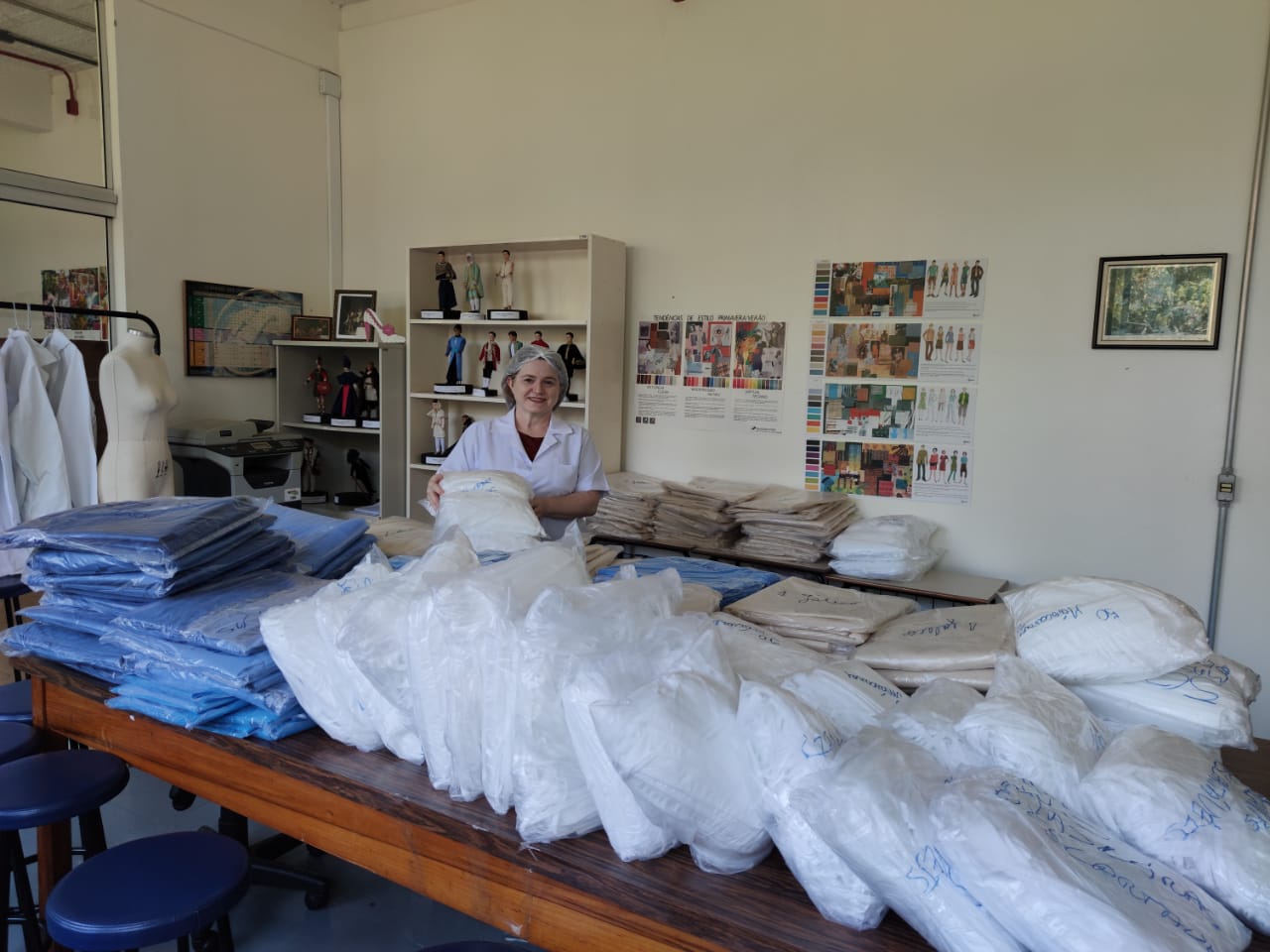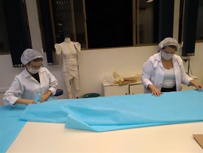 Divididos em três turnos, cerca de 50 voluntários se revezam, há pouco mais de uma semana, para produzir máscaras e jalecos descartáveis que serão usados no atendimento de casos suspeitos de COVID-19 em Passo Fundo. Neste período, cerca de 3,5 mil unidades de máscaras e 600 jalecos foram produzidos e entregues para serem utilizados.