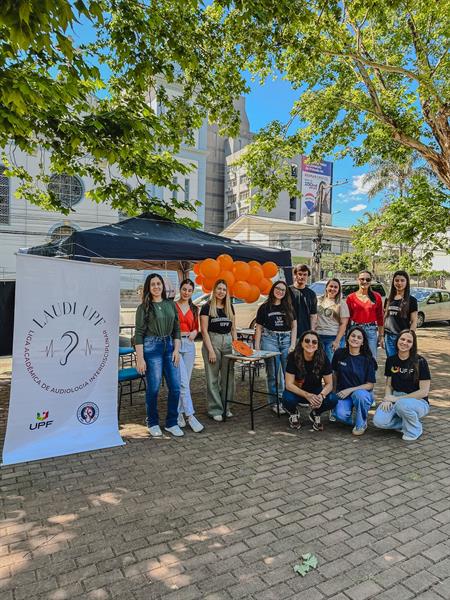 Acadêmicos do curso de Fonoaudiologia da Universidade de Passo Fundo (UPF), do 4º ao 8º nível, juntamente com integrantes da Liga Acadêmica de Audiologia Interdisciplinar (LAUDI), realizaram uma ação especial em alusão ao Novembro Laranja, mês dedicado à conscientização, prevenção e informação sobre o zumbido.