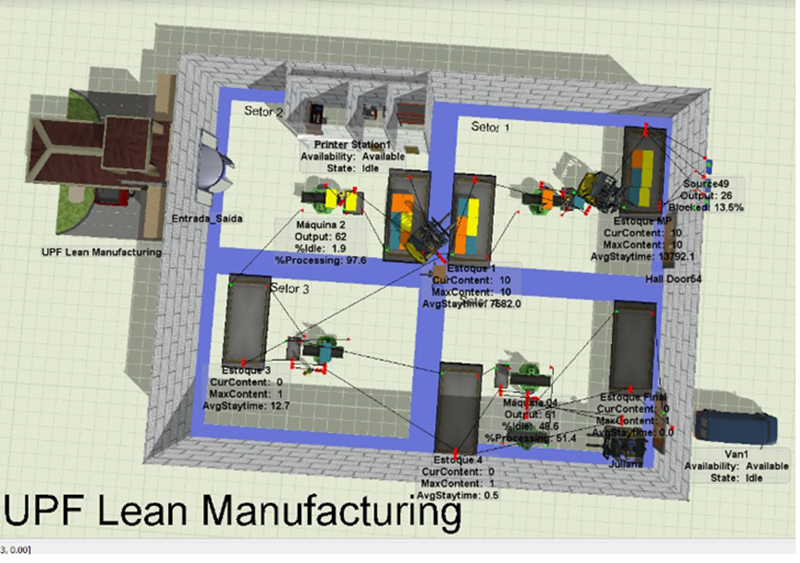 O Lean Simulation é um desafio Nacional de criação de exercícios relacionados à gestão e à engenharia de produção. Nessa categoria, com o uso do software FlexSim, foi trabalhada uma simulação computacional. A equipe simulou o ambiente de um setor fabril em uma situação real, e depois promoveu melhorias, simulando um novo ambiente.
