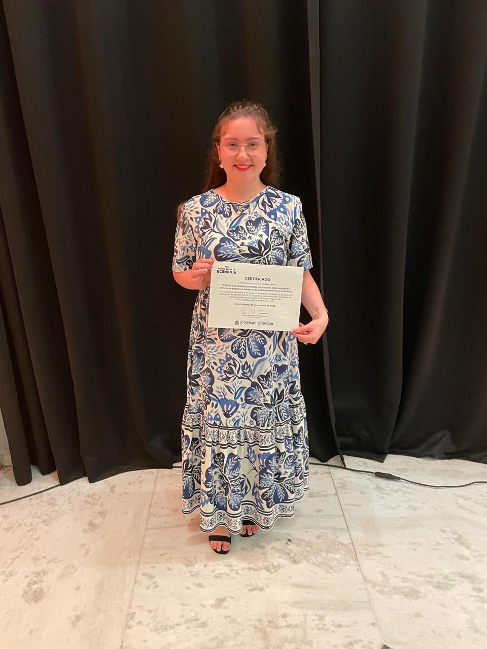 A acadêmica Êmili Decesare de Oliveira, do IV nível do curso de Ciências Econômicas da Universidade de Passo Fundo (UPF), conquistou o 3º lugar nacional no XXXI Prêmio Brasil de Economia, promovido pelo Conselho Federal de Economia (Cofecon). Ela foi a única representante do Rio Grande do Sul premiada na categoria Artigo Temático, reforçando o destaque da formação oferecida pela Instituição.