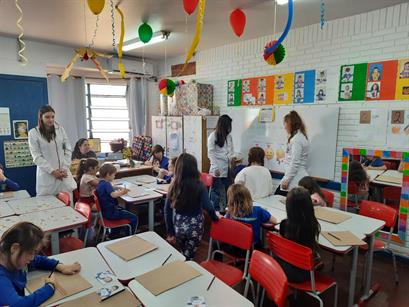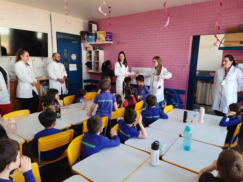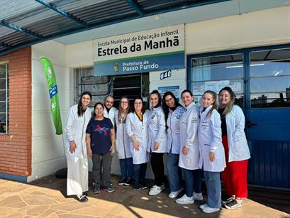 Os acadêmicos do curso de Enfermagem da Universidade de Passo Fundo (UPF) promoveram, no dia 22 de outubro, uma atividade educativa com turmas de 4º e 5º anos da Escola Municipal de Educação Infantil (EMEI) Estrela do Amanhã. A ação teve como objetivo incentivar hábitos alimentares saudáveis desde a infância, de forma lúdica e interativa.