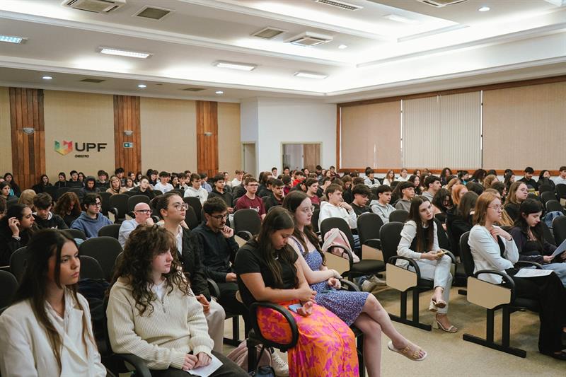 O Projeto de Extensão Educação em Direitos Humanos para a Juventude (EduDHJuv), do Curso de Direito da Universidade de Passo Fundo (UPF), promoveu, no dia 7 de novembro, o Júri Simulado em Direitos Humanos, em parceria com o Integrado UPF. A atividade reuniu estudantes do 2º ano do ensino médio em uma atividade prática sobre justiça, cidadania e direitos humanos.