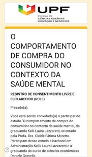 Os cursos de Administração e Ciências Econômicas da Universidade de Passo Fundo (UPF) estão desenvolvendo uma pesquisa sobre o comportamento de compra do consumidor no contexto da saúde mental. O estudo toma como referência a economia comportamental e a economia psicológica, áreas que investigam como fatores emocionais e cognitivos influenciam as decisões financeiras.
