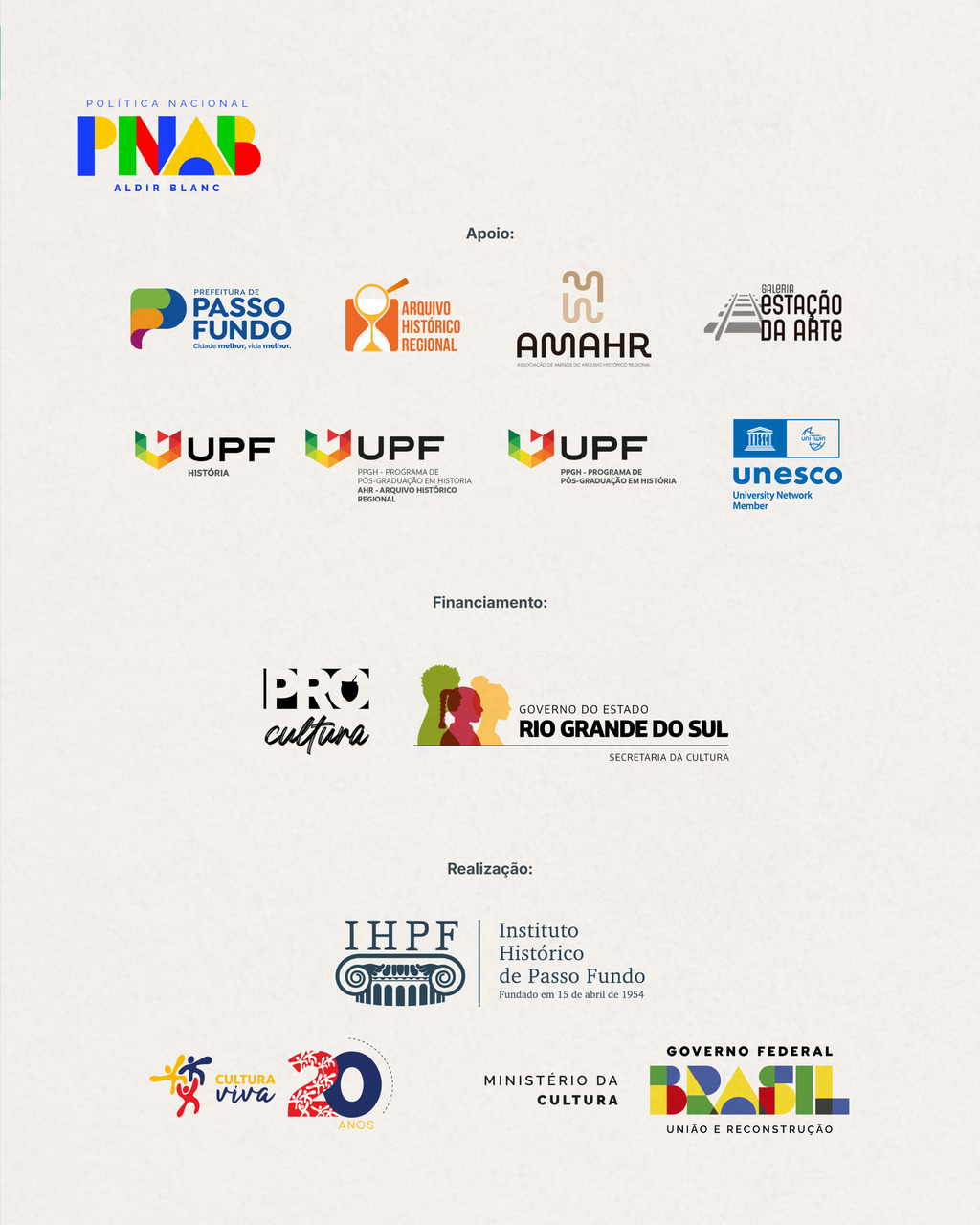 O projeto é financiado pelo Pró-Cultura RS e conta com o apoio da Política Nacional Aldir Blanc, reforçando o compromisso com o fomento à cultura e à preservação da memória histórica e social.