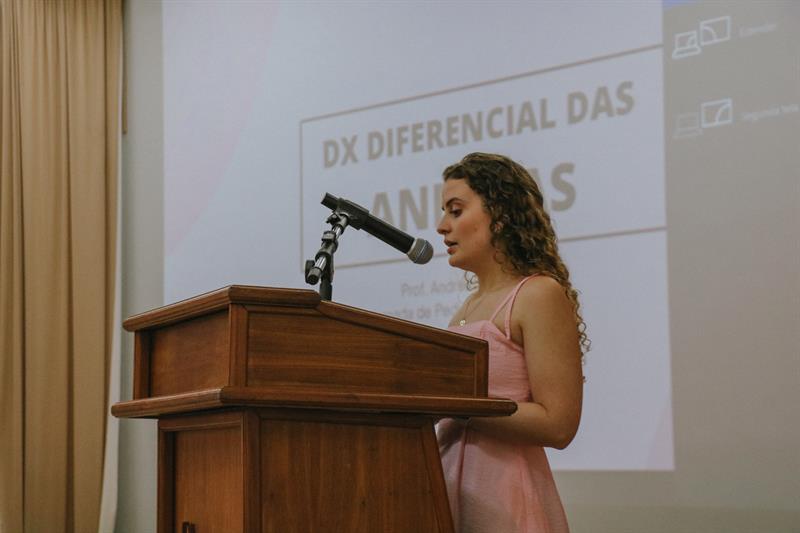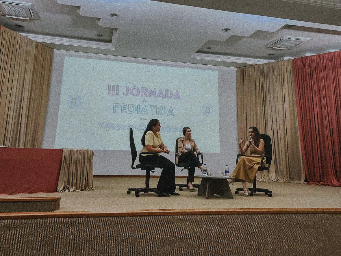A abertura da jornada, realizada na noite de segunda-feira (16), foi marcada por palestras que abordaram desde aspectos clínicos até questões emergentes relacionadas ao desenvolvimento infantil. A primeira conferência foi conduzida pela Dra. Andressa Van Riedel, que tratou sobre anemias na infância, destacando a importância do diagnóstico precoce e do manejo adequado na prática clínica.