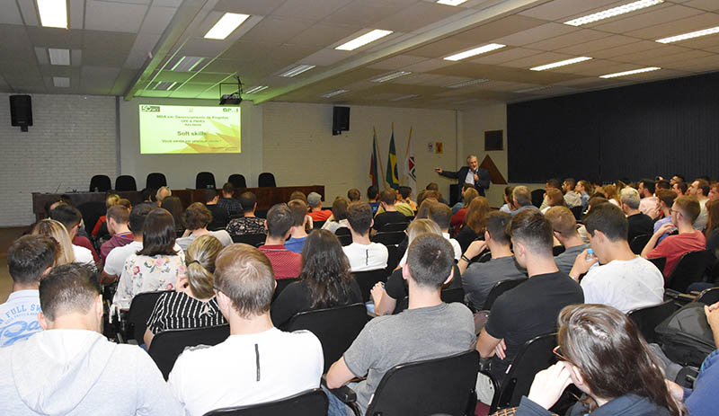 O MBA em Gerenciamento de Projetos da Universidade de Passo Fundo (UPF), conveniado com o Project Management Institute - Branch Norte Gaúcho (PMI-RS), promoveu, na noite de quinta-feira, 28 de março, no auditório do prédio B5, uma aula aberta sobre “Soft Skills - Você ainda vai precisar disto!”, com o professor e engenheiro Me. Marco Antonio Kappel Ribeiro. O evento reuniu professores, estudantes e profissionais da área.