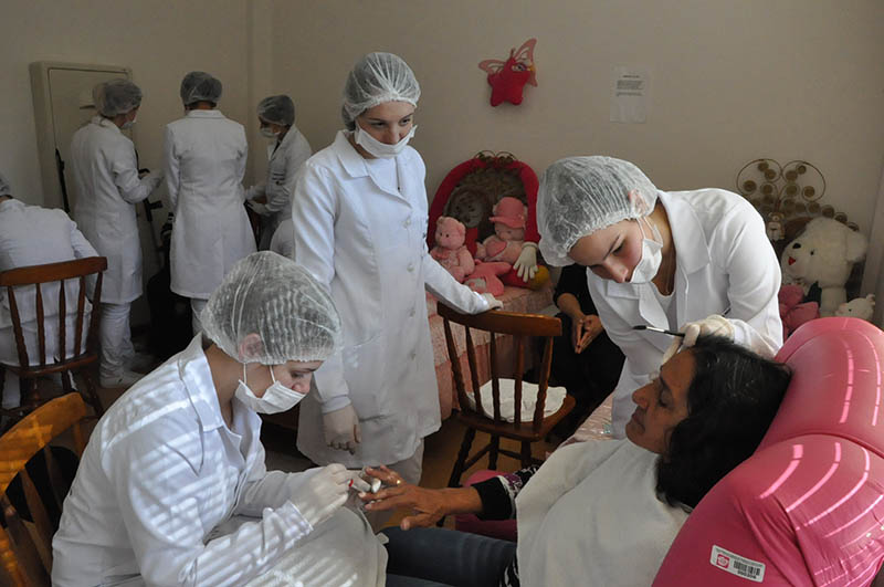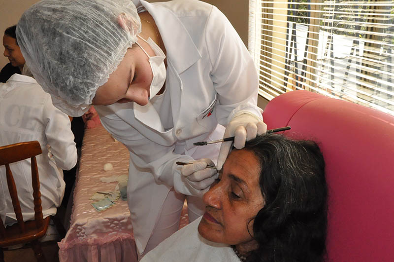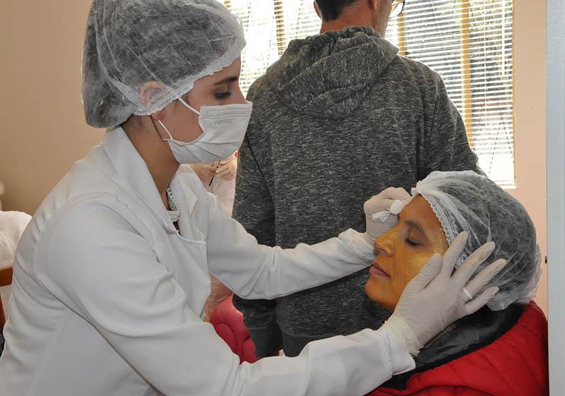 Além de prestarem orientações e repassarem dicas de saúde e beleza, as estudantes realizaram tratamentos faciais, corporais, design de sobrancelhas, maquiagem, embelezamento de unhas, massagem de mãos e massagem quick.