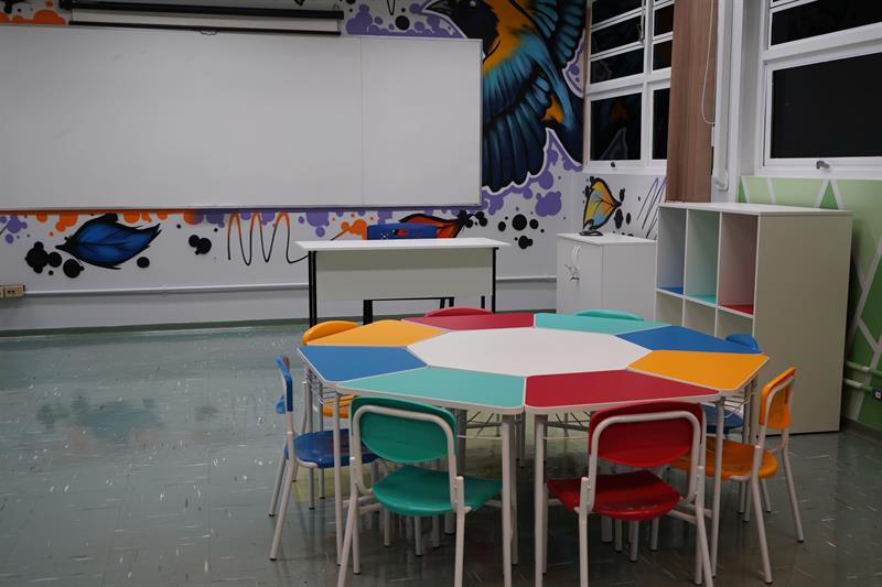 Com ambientes coloridos, lúdicos e pensados especialmente para os anos iniciais, as salas refletem a proposta pedagógica da escola. Cada espaço é tematizado a partir da obra do educador e escritor Rubem Alves, escolhida para dialogar com o desenvolvimento das crianças nessa etapa escolar.
