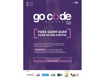Estão abertas as inscrições para a 3ª edição do projeto Go Code Blocks, ligado à Vice-Reitoria de Extensão e Assuntos Comunitários da Universidade de Passo Fundo (VREAC/UPF). O projeto é uma iniciativa da UPF, desenvolvida em parceria com a Fundação Maurício Sirotsky Sobrinho (FMSS) e com o apoio de empresas de Passo Fundo. O Go Code Blocks é um curso gratuito que busca capacitar jovens de ensino médio da rede pública de ensino em lógica de programação e habilidades profissionais do mundo do trabalho.