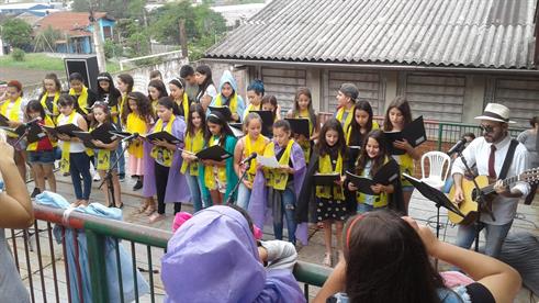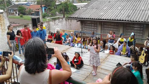 As Estações de Leitura das Jornadas Literárias chegaram, no último sábado, 24 de novembro, à Escola Municipal Professor Arno Otto Kiehl, no bairro 1º Centenário em Passo Fundo. A ação reuniu professores e estudantes que compartilharam com a comunidade suas produções e percepções acerca das obras literárias, trabalhadas por meio de maquetes, teatro, música, cartazes, entre outras maneiras. A ação faz parte do projeto Jornada em Movimento "Caminhos e estações: leitores e autores".