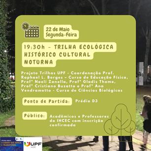 - 19h30min: Trilha Ecológica Histórico Cultural Noturna