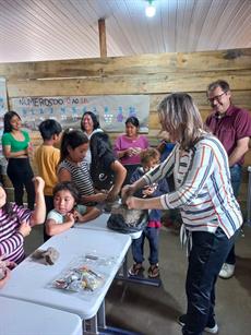 O diretor da escola, Israel Kujawa, celebrou a iniciativa, ao pontuar que a escola, criada há cerca de um ano, é uma conquista da comunidade e atualmente conta com uma média de 30 estudantes, todos moradores da Aldeira Goj Jur. “Hoje temos o privilégio de receber a UPF aqui através de seus museus, possibilitando que o conhecimento sintetizado na Universidade chegue aqui na comunidade e promova essa interação”, disse o diretor. “Ficamos muito satisfeitos com essa ação e pela UPF vir nos prestigiar com as atividades sobre os animais, tirando dúvidas e trazendo conhecimento para nossas crianças”, comentou a professora da escola, Lucimar Lima Siqueira.
