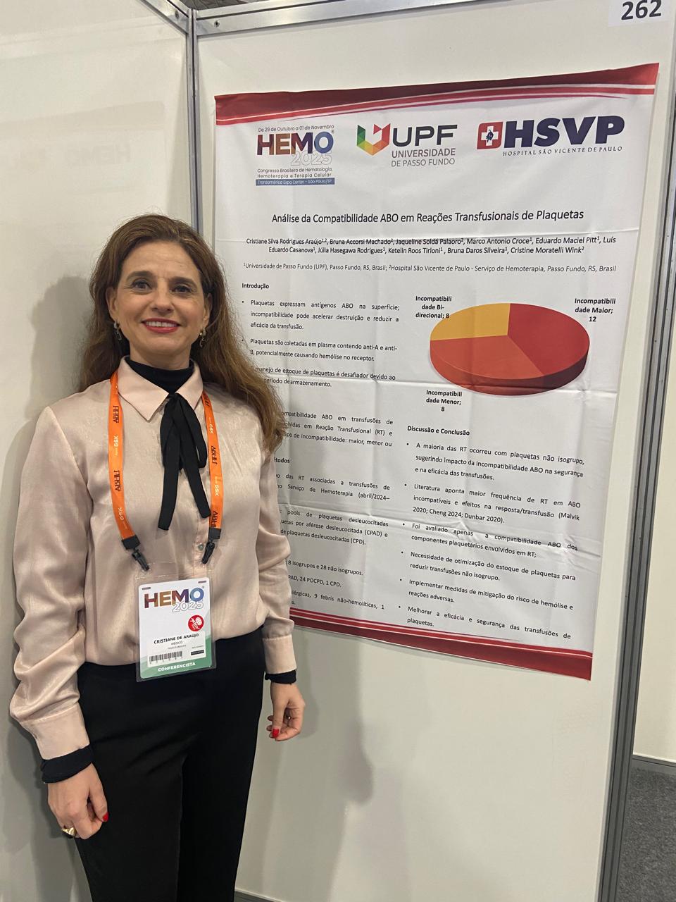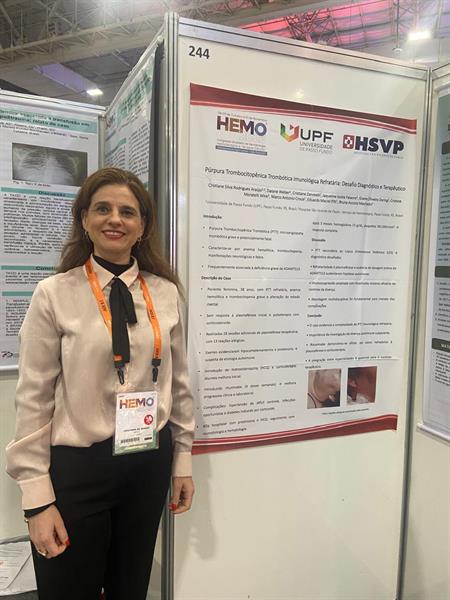 A professora Cristiane da Silva Rodrigues de Araújo, do curso de Medicina da Universidade de Passo Fundo (UPF), participou do HEMO 2025 – Congresso Brasileiro de Hematologia, Hemoterapia e Terapia Celular, realizado entre os dias 29 de outubro a 1 de novembro, em São Paulo. O evento é promovido pela Associação Brasileira de Hematologia, Hemoterapia e Terapia Celular (ABHH) e é considerado o maior encontro da área na América Latina.