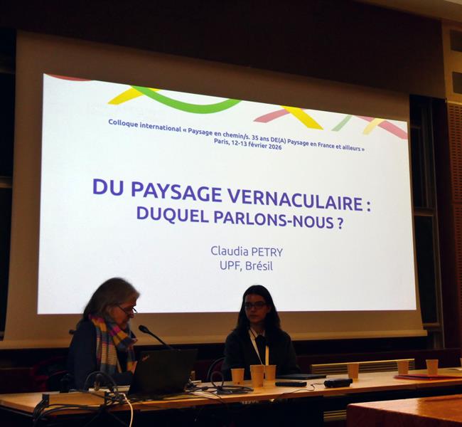 A Universidade de Passo Fundo (UPF) foi representada pela professora Dra. Claudia Petry no Colóquio "Paisagens ao longo do caminho: 35 anos de (A) paisagens na França e em outros lugares". O evento, realizado nos dias 12 e 13 de fevereiro, na Escola Superior de Arquitetura de Paris La Villette (EASPLV), localizada em Paris, na França, celebrou os 35 anos da formação internacional de mestrado "DEA - JPT" (Diploma de estudos aprofundados "Jardins Paisagens Territórios").