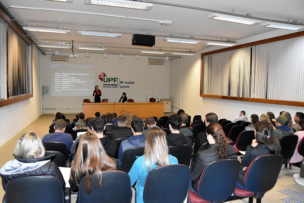 Para conhecer mais sobre as leis que regem o tema do Direito do Trabalho, o curso de Direito da Universidade de Passo Fundo e o projeto de extensão Balcão do Trabalhador realizaram um encontro na manhã desta sexta-feira, 17 de maio, com a procuradora do Ministério Público do Trabalho de Passo Fundo Priscila Dibi Schvarcz. Na oportunidade, a procuradora versou sobre “Saúde e segurança do trabalhador” aos acadêmicos do curso de Direito da UPF.