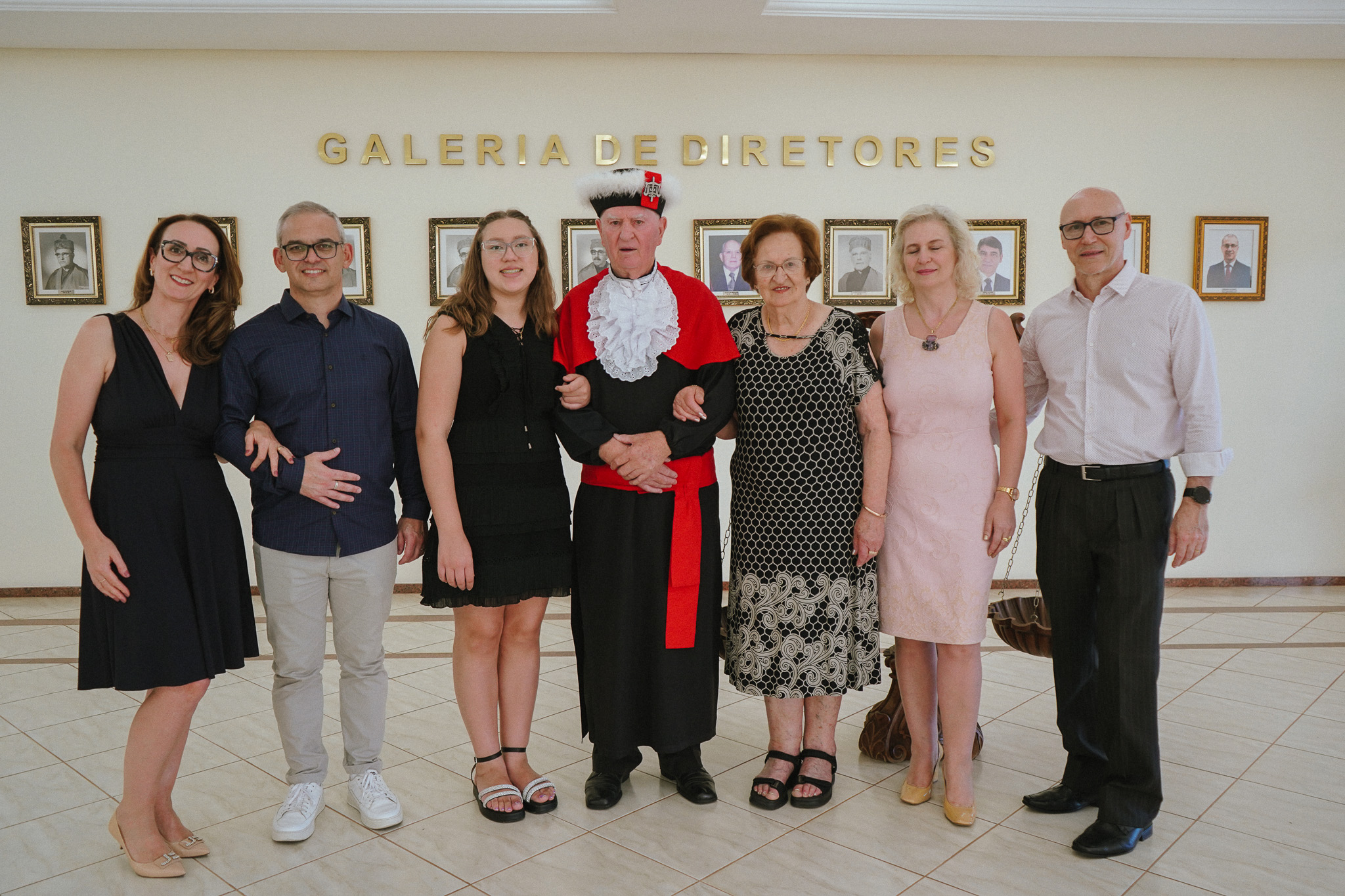 Lembrou com emoção o dia da colação de grau, destacando que a formatura, realizada em 1975, foi marcada por alegria e esperança, sentimentos que permanecem vivos mesmo após cinco décadas. Em sua fala, também prestou homenagem aos colegas e professores que já faleceram, ressaltando a importância de preservar a memória coletiva como forma de manter viva a história do curso e de seus protagonistas.