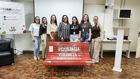 Na noite de terça-feira (24), a UPF Casca inaugurou o “Banco Vermelho”, projeto elaborado pelos estudantes do terceiro nível do curso de Direito, em parceria com o Projur Mulher e Diversidade. A ação é um símbolo internacional de conscientização e enfrentamento ao feminicídio e à violência contra a mulher, pensada como mais uma forma de dar visibilidade ao Mês da Mulher.