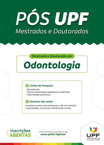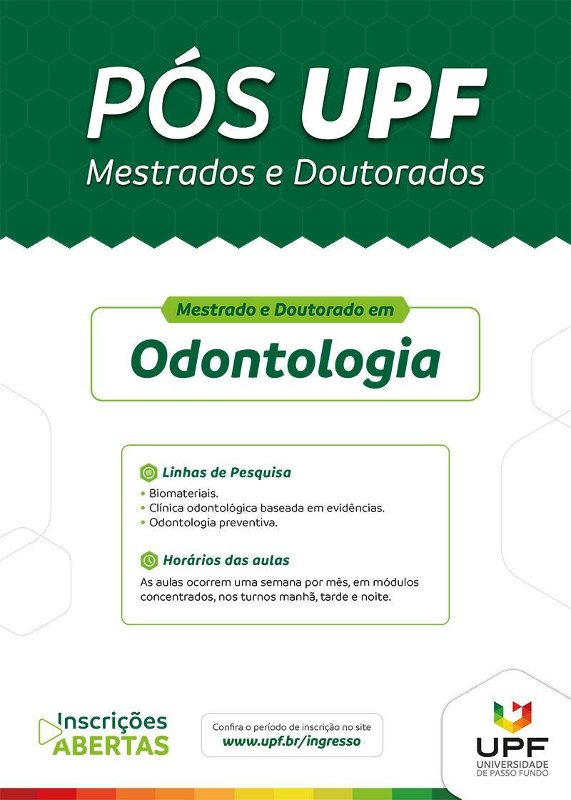 O Programa de Pós-Graduação em Odontologia (PPGOdonto) da UPF está com inscrições abertas para os cursos de Mestrado e Doutorado. Até 15 de novembro, os interessados podem acessar o site para participar do processo acessando aqui.