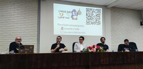 Participaram como convidados Felipe Vargas (Spassu/Petrobrás), Diego Inácio Patrício (Embrapa e UPF), Henrique Langa (Inel) e Paulo Hasse (Atua by nstech), que compartilharam suas experiências e debateram sobre o papel do Linux como espinha dorsal da tecnologia moderna.
