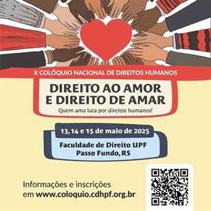 A Universidade de Passo Fundo (UPF) é a co-promotora do X Colóquio Nacional de Direitos Humanos. O evento, que ocorre de 13 a 15 de maio, na Faculdade de Direito, Campus I, terá como tema “Direito ao amor e direito de amar”.