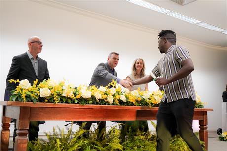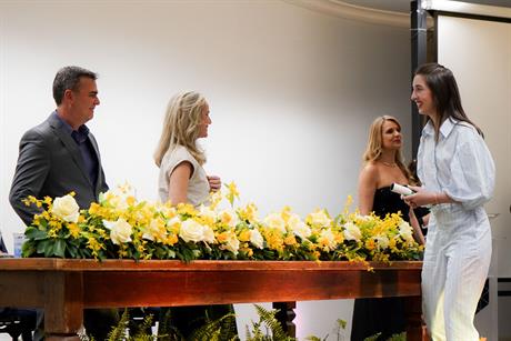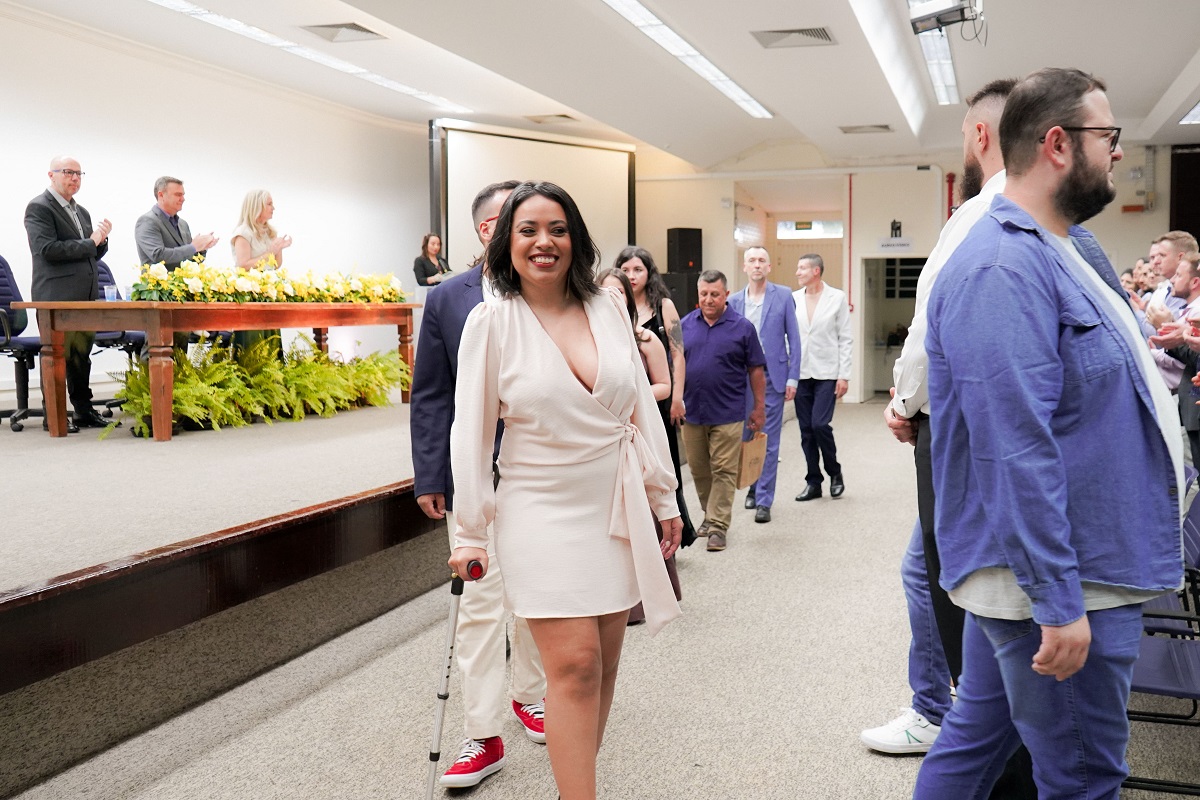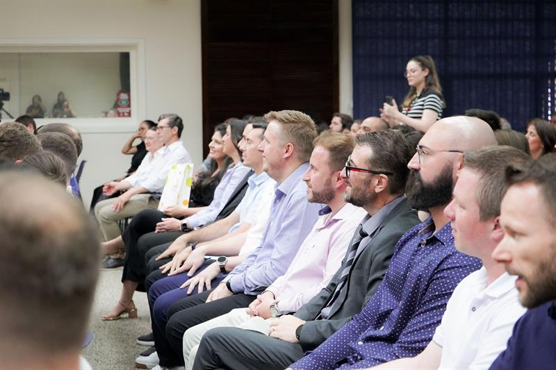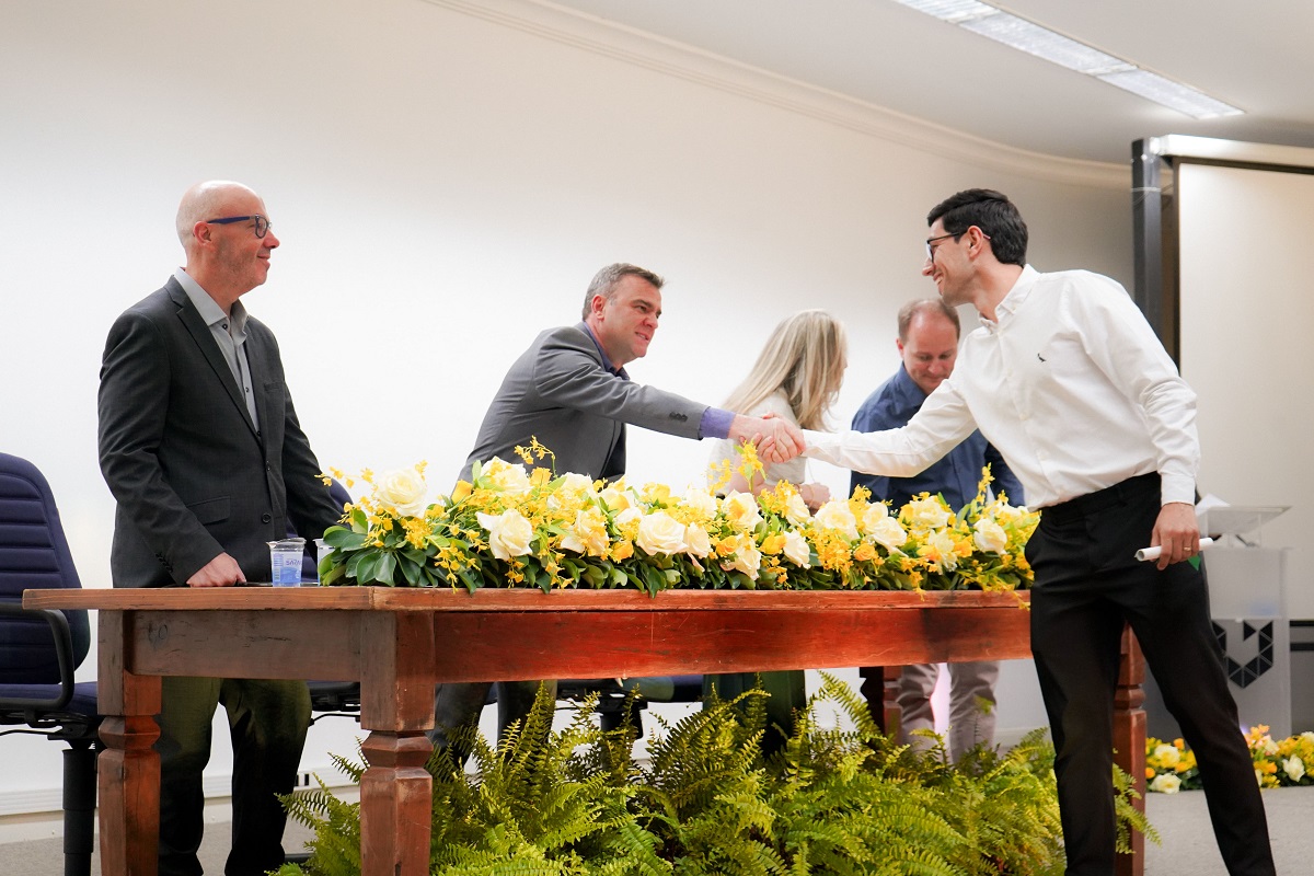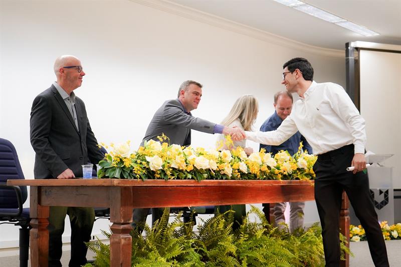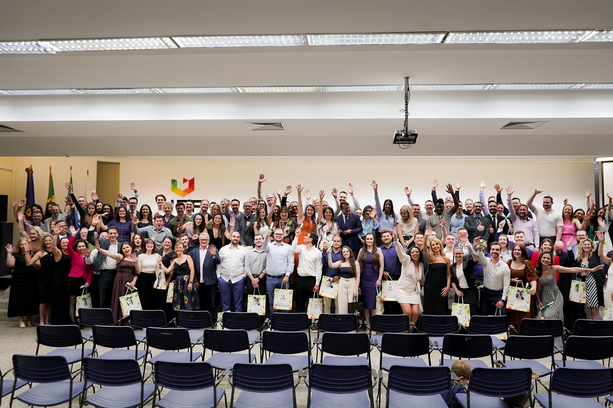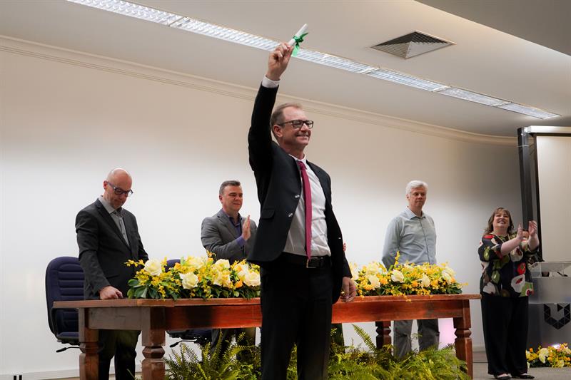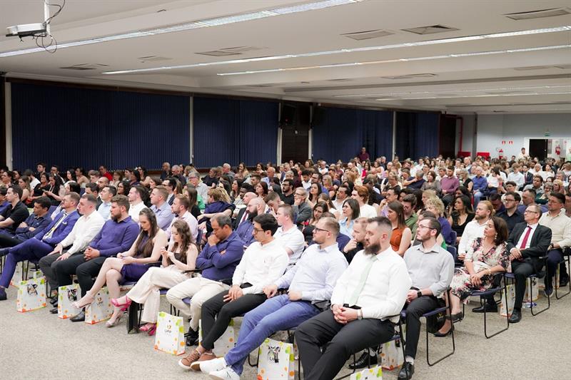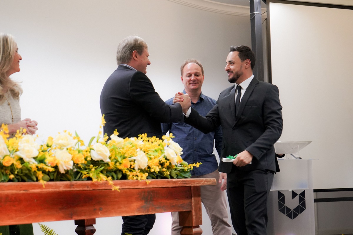 Entre os destaques da Cerimônia, esteve a diplomação de 10 mestres do Programa de Pós-Graduação em Computação Aplicada realizado em parceria com a Stara. Ao longo de dois anos, funcionários desenvolveram suas pesquisas dentro da própria empresa, impactando diretamente na competitividade da empresa e no desenvolvimento da região. Falando em nome de todos os diplomados, o mestre em Computação Aplicada Cássio Chiconetto destacou a oportunidade de participar dessa iniciativa inédita. “Hoje, na Stara, pudemos ver e viver esse trabalho para elevar o seu quadro profissional, que deve seguir como exemplo para outras iniciativas, onde temos a empresa e a Universidade trabalhando juntos. Obrigado à família Stara por nos proporcionar este momento. Obrigado, Universidade de Passo Fundo, por confiar nessa parceria e desejo do fundo do meu coração que venham muito mais parcerias desse modelo. Parabéns a todos nós. O futuro da ciência e da inovação está em nossas mãos”, concluiu.