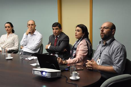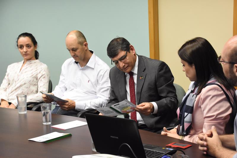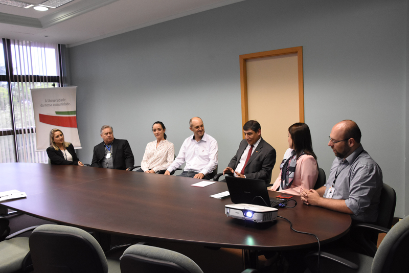 O reitor da Universidade de Passo Fundo (UPF) José Carlos Carles de Souza, recebeu na tarde desta quinta-feira, 9 de outubro, uma comitiva do Governo do Estado do Rio Grande do Sul. Na ocasião, foi apresentado o modelo de governança implantado pela gestão, assim como foi debatido um termo de cooperação entre o governo e a Universidade para o desenvolvimento de projetos de energia elétrica para as escolas estaduais. Participaram do encontro a chefe de gabinete da Secretaria de Planejamento, Governança e Gestão (SPGG), e chefe de Gabinete do Departamento de Monitoramento de Resultados, Melissa Custódio; os assessores de governança da SPGG, Jonas Machado e Melina Drebes; o diretor adjunto administrativo da Seduc, Carlos Alexandre Ávila; a diretora da SOP, Roberta Campani, assim como o coordenador do curso de Engenharia Elétrica da UPF, professor Me. Rodrigo Siqueira Penz.