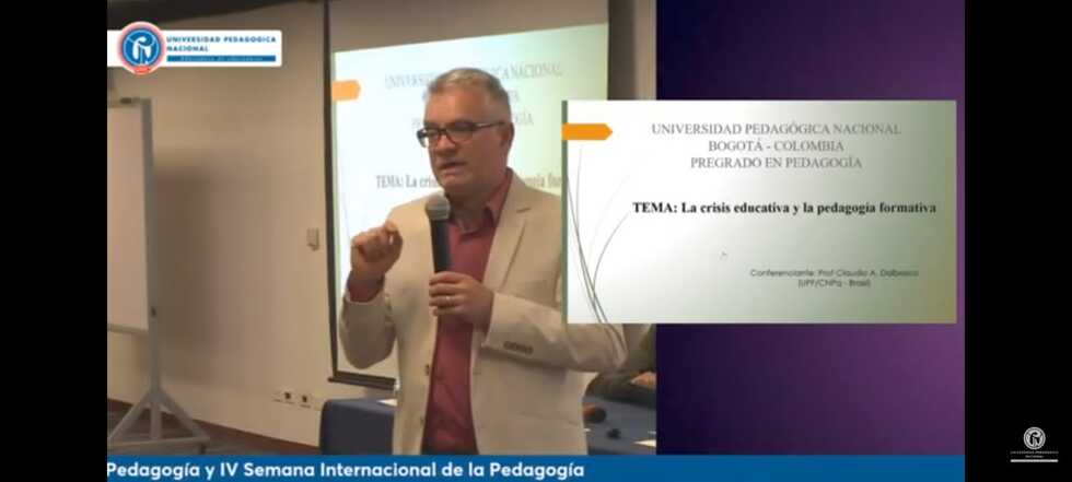 Durante a visita *na UPTC*, o professor proferiu duas conferências e ministrou o seminário "Pensamento Pedagógico Latinoamericano", com foco temático em "Pedagogia do diálogo e formação humana". Participaram do encontro 18 doutorandos da primeira turma do Doutorado em Pedagogia e Didática da referida universidade.