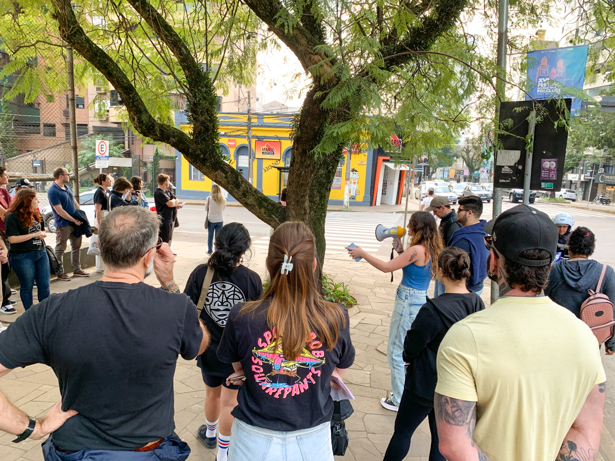A praça Ernesto Tochetto foi o ponto de partida do percurso que incluiu diversas edificações ao seu redor, como os colégios Protásio Alves e Marista Conceição, a casa Della Mea e o prédio onde funcionou a Beth’s Noivas. A caminhada encerrou na Casa Nöthen (João Café), localizada na Avenida Brasil e que é objeto de estudos dos acadêmicos da disciplina extensionista de Projeto Arquitetônico Integrado VI.